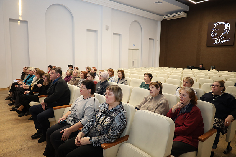 Людмила Николаевна Фирсова вручила Благодарности и Почетные грамоты от обкома профсоюза работников культуры юбилярам 2024 года: Л. И. Фроловой, Н. В. Барковой, Т. В. Бартеневой, С. В. Максимкиной. Л. И. Кукиной и В. Н. Волковой