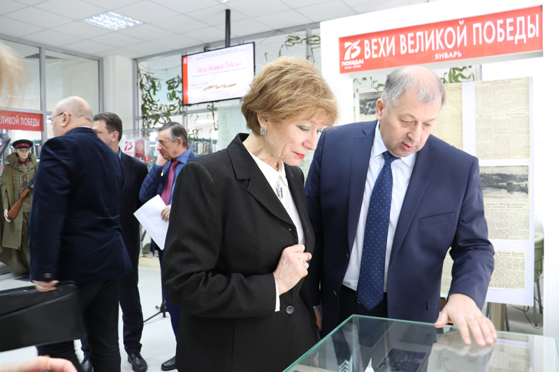 В рамках Года памяти и славы в библиотеке состоялась презентация выставочного проекта «Вехи Великой Победы». Ее участниками стали представители органов государственной власти, ученые, общественные деятели, активисты молодежных общественных организаций, актеры театра «Переход», школьники и студенты, члены Совета ветеранов и журналисты рязанских СМИ.