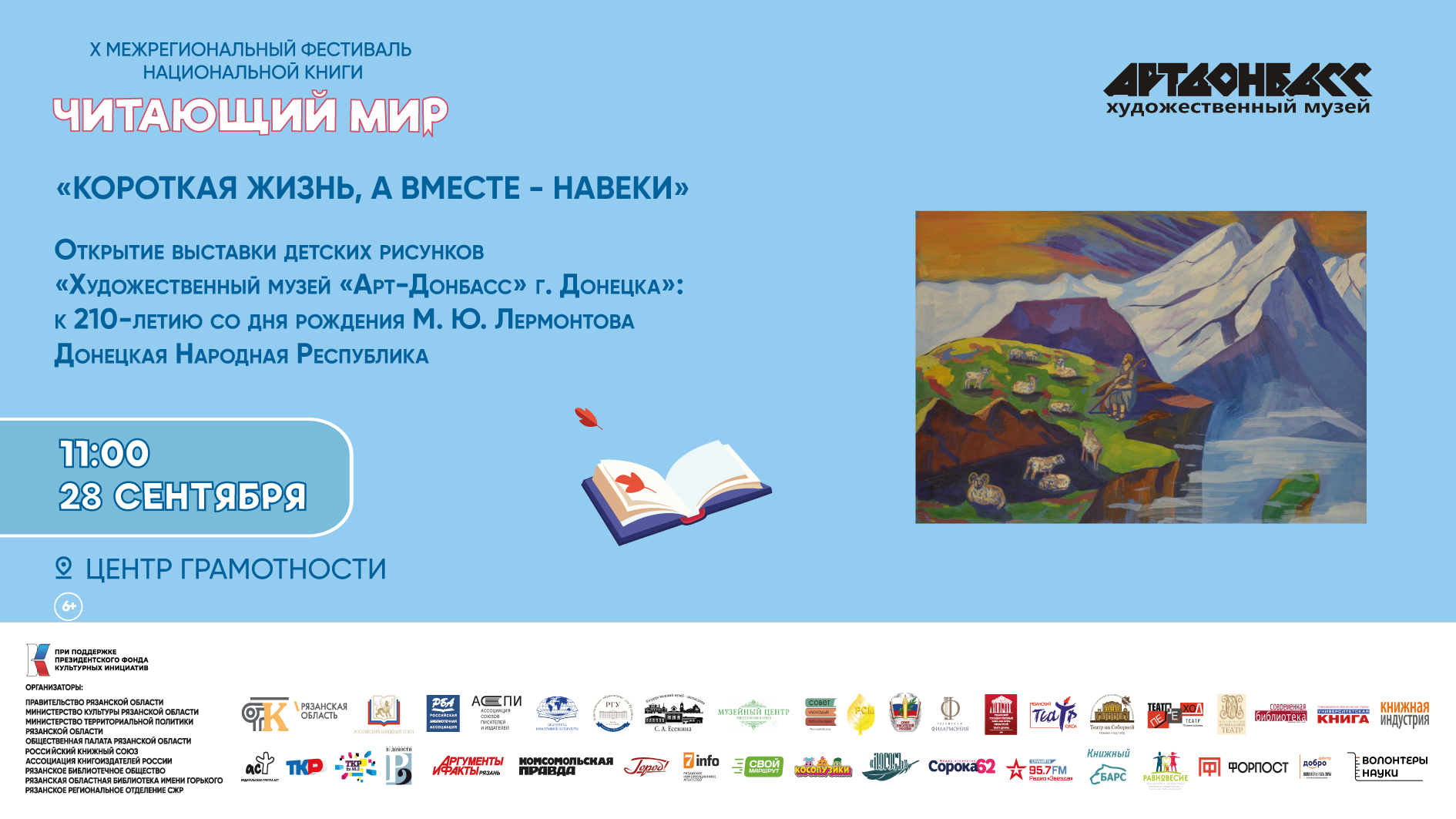 В рамках X Межрегионального фестиваля национальной книги «Читающий мир», поддержанного Президентским фондом культурных инициатив, состоялось открытие выставки детских рисунков «Короткая жизнь, а вместе – навеки», приуроченной к 210-летию со дня рождения классика русской литературы Михаила Юрьевича Лермонтова.