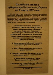 В 1837 – 1857 годы в здании 1-й мужской гимназии (где сейчас находится «Политех») формировался книжный фонд. Благодаря активной деятельности губернатора П.П. Новосильцева и директора училищ Ф.И. Шиллинга удалось собрать необходимые средства для организации Рязанской публичной библиотеки. В 1858 году состоялось ее открытие.
