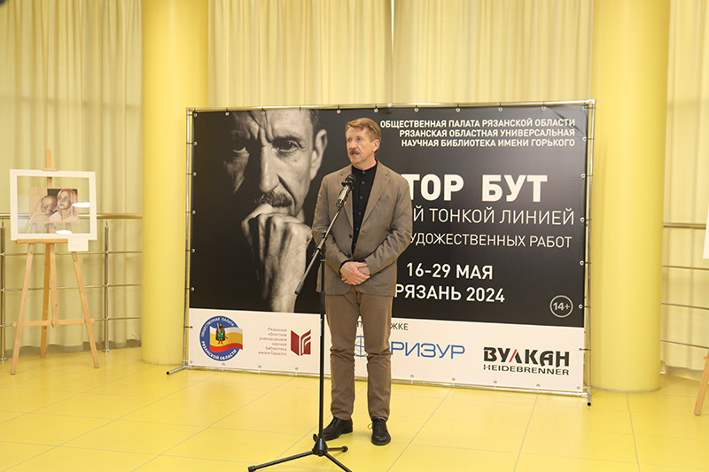 15 мая в Рязанской областной универсальной научной библиотеке имени Горького состоялось открытие выставки картин российского общественного деятеля Виктора Бута «Берег мой тонкой линией».