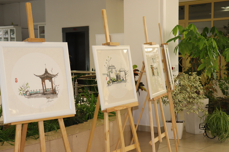 На выставке представлены работы и проекты студентов института, выполненные под руководством преподавателей. На церемонии открытия выставки Игорь Мурог вручил группе студентов под руководством преподавателя Светланы Каретниковой сертификат Международного научно-исследовательского института развития Пекинского университета гражданского строительства и архитектуры за проект «Библиотека будущего».