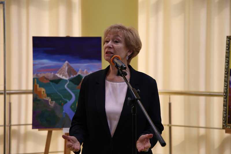 Музыкальным подарком для всех гостей стало выступление супруги автора выставки Ольги с любимой песней мужа «К единственному нежному» (музыка И. Азаров, слова Р. Лисиц).