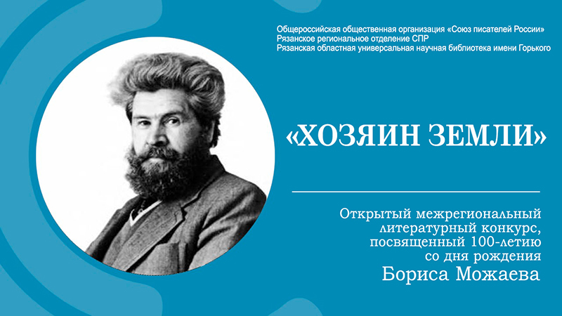 В рамках празднования 100-летнего юбилея выдающегося писателя Бориса Андреевича Можаева Общероссийская общественная организация «Союз писателей России», Рязанское региональное отделение Общероссийской общественной организации «Союз писателей России» и Рязанская областная универсальная научная библиотека имени Горького проводят литературный конкурс «Хозяин земли». Цель конкурса – поддержание и развитие интереса к творчеству нашего земляка Б.А. Можаева.