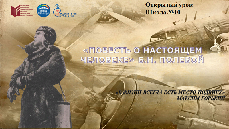 27 мая 2022 года в библиотеке им. Горького сотрудники отдела молодежных проектов и волонтерской деятельности библиотеки им. Горького провели открытый урок на тему человеческого подвига по произведению Б.Н. Полевого «Повесть о настоящем человеке» для учащихся школы №10.