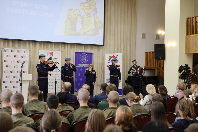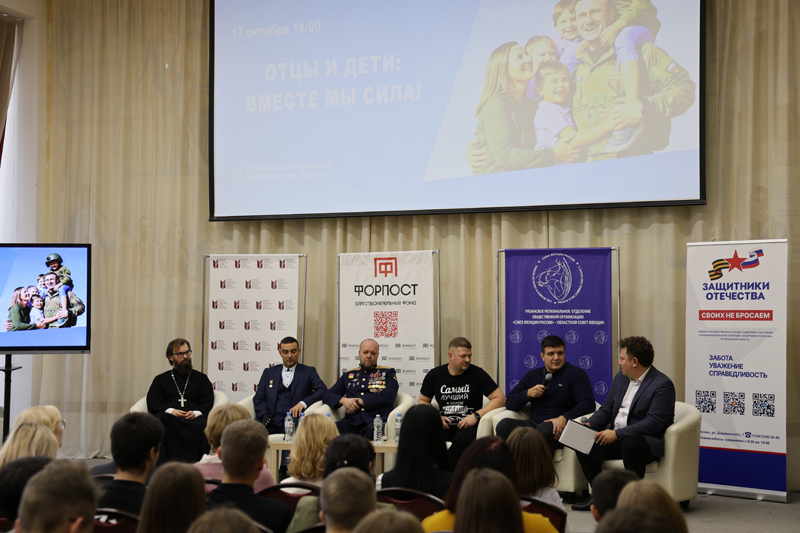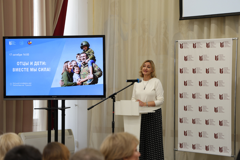 17 октября при поддержке Правительства Рязанской области в Областной универсальной научной библиотеке имени Горького состоялось торжественное мероприятие, посвященное этому знаменательному дню, «Отцы и дети: вместе мы сила», участниками которого стали представители министерств и ведомств, ассоциации ветеранов СВО, государственный фонд поддержки участников СВО «Защитники Отечества», благотворительный фонд «Форпост», члены областного Совета женщин, студенческая молодежь, учащиеся общеобразовательных учреждений.