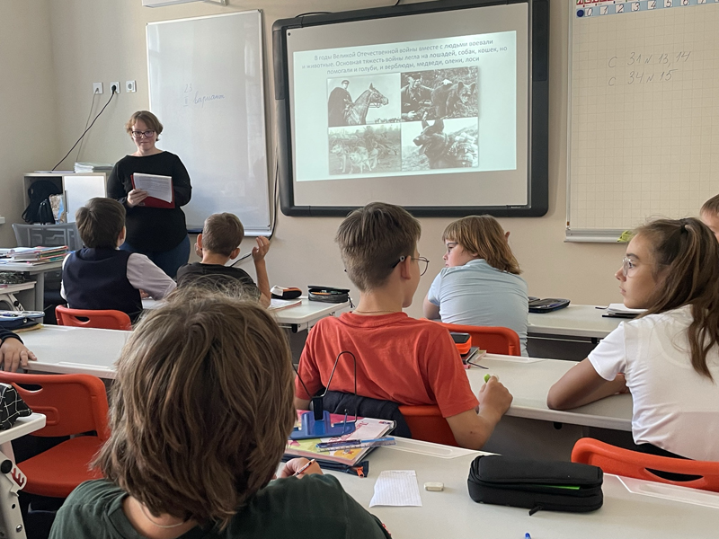 На мероприятии дети узнали о том, как собаки, лошади, кошки и другие животные помогали солдатам на фронте. Четвероногие бойцы выполняли важные задачи: доставляли военные грузы, служили миноискателями, работали санитарами, передавали донесения, выступали в роли разведчиков.