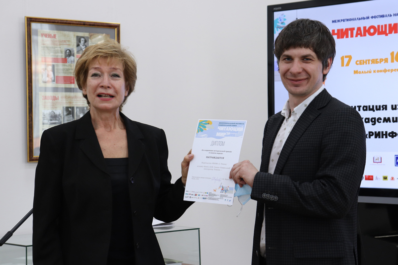 Встречу открыла директор библиотеки Наталья Гришина, которая поделилась воспоминаниями о нашем великом земляке, а также вручила диплом лауреата конкурса «Книга года» в номинации «За сохранение исторической правды и памяти народа» Кириллу Викулову, директору рязанского издательства «РИНФО», где книга была издана.