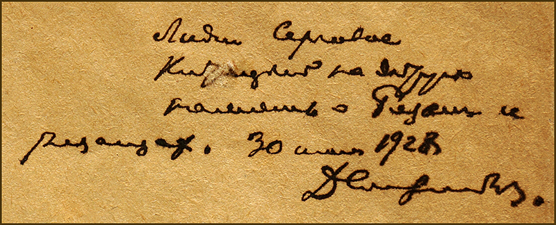 На титульном листе одного из 4-х экземпляров книги Д. Д. Солодовникова сохранилась дарственная надпись автора, датируемая 1928 годом. Она адресована Лидии Сергеевне Китицыной (1903 – 1990) – сотруднику Этнологической станции Костромского научного общества по изучению местного края. Супруга председателя этого Общества, известного краеведа, археолога и музейного работника В. И. Смирнова, она и сама была увлечённым исследователем: участвовала в ежегодных археологических раскопках и этнографических экспедициях, занималась диалектологией, записывала произведения народного творчества.