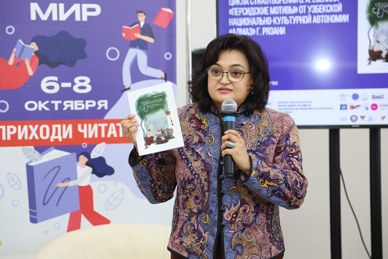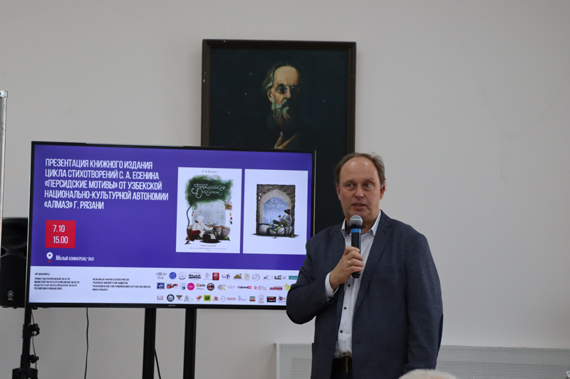 В рамках межрегионального фестиваля национальной книги «Читающий мир» состоялась презентация книжного издания цикла стихотворений С. А. Есенина «Персидские мотивы» на русском и узбекском языках, подготовленного Рязанской местной узбекской национально-культурной автономией «Алмаз». Сборник стихотворений с авторскими иллюстрациями художницы Онахон Петрушиной (Халияровой) стал результатом реализации проекта «Грани дружбы» при финансовой поддержке Фонда президентских грантов РФ.
