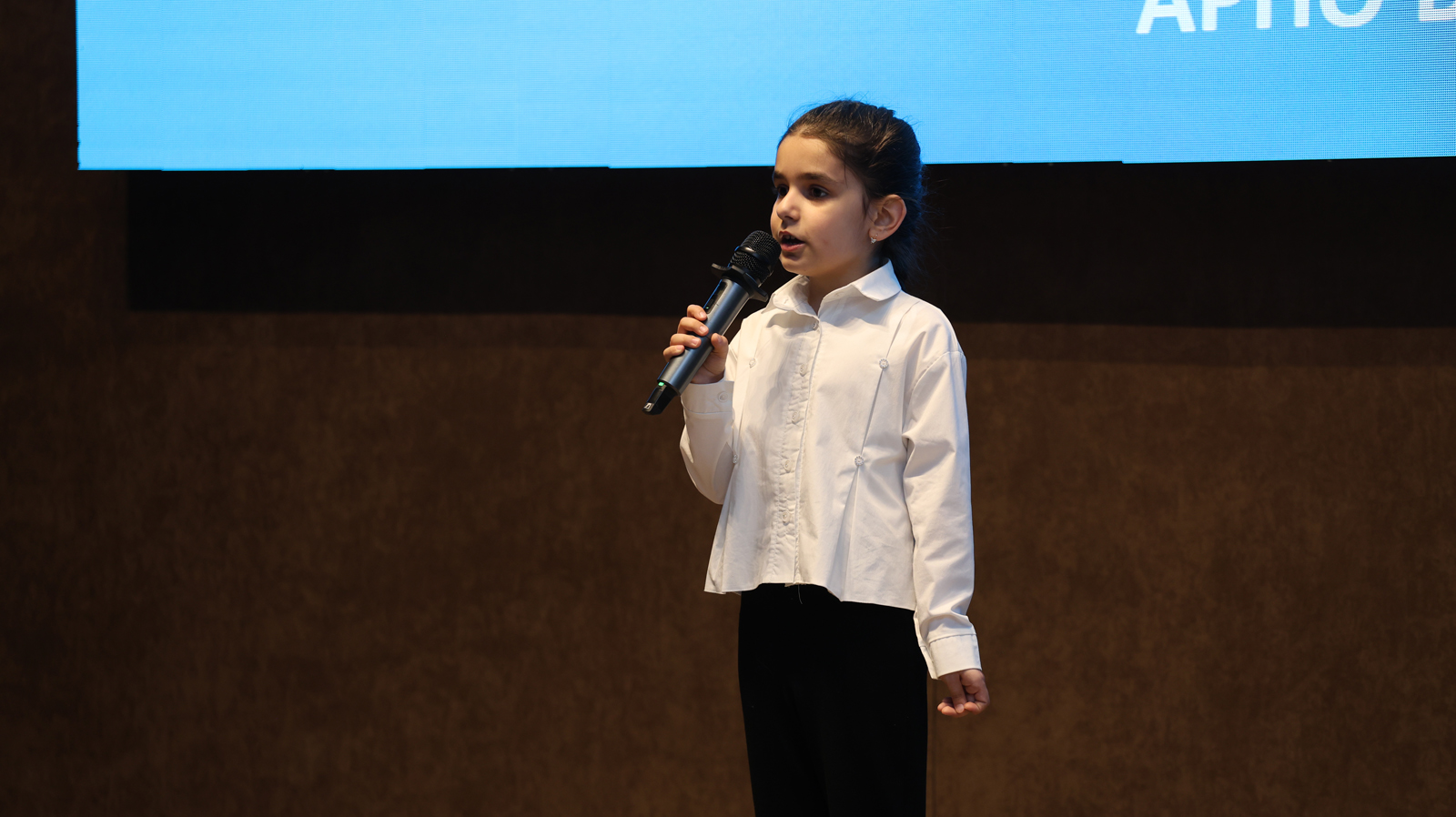 Звучали стихи современных и советских поэтов, посвященные Арно Арутюновичу, в исполнении Евы Абрамян, Марии Овсепян и Лары Барсегян.