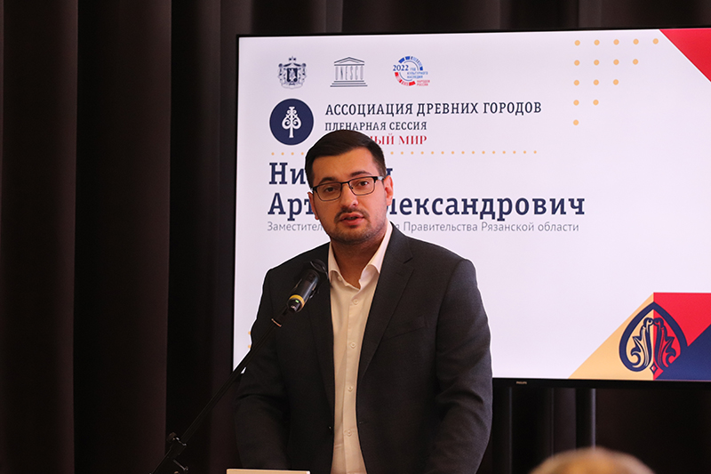 Заместитель председателя правительства Рязанской области Артем Александрович Никитин поприветствовал собравшихся от имени временно исполняющего обязанности губернатора Павла Викторовича Малкова. Он отметил, то с 2018 года в Форуме древних городов на Рязанской земле приняли участие представители более 60 стран, проведено более 400 мероприятий, постановления Форума разных лет сегодня воплощаются в жизнь. Среди них – создание Ассоциации древних городов, электронной энциклопедии древних поселений Рязанской области, реконструкция комплекса Торгового городка в Рязани. Артем Никитин выразил уверенность, что Форум позволит его участникам ближе познакомиться с Рязанской областью и даст импульс развитию въездного туризма.