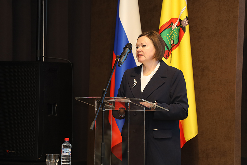 Официальная часть мероприятия продолжилась выступлением Светланы Алексеевны Винокуровой, заместителя директора по развитию Рязанской областной универсальной научной библиотеки имени Горького, председателя Рязанского библиотечного общества, почетный работник культуры и искусства Рязанской области. Она обозначила стратегические цели и задачи развития библиотек согласно нормативным документам, в которых особое внимание уделено политике по сохранению и укреплению традиционных российских духовно-нравственных ценностей, а также поддержке русского языка и языков народов России. В своем выступлении Светлана Алексеевна выделила ключевые события и региональные мероприятия, запланированные на 2025 год.