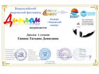Дипломом I степени в номинации «Творческий номер» отмечено стихотворение Г. Рублёва «Это было в мае, на рассвете», произведение прочла Татьяна Ганина.