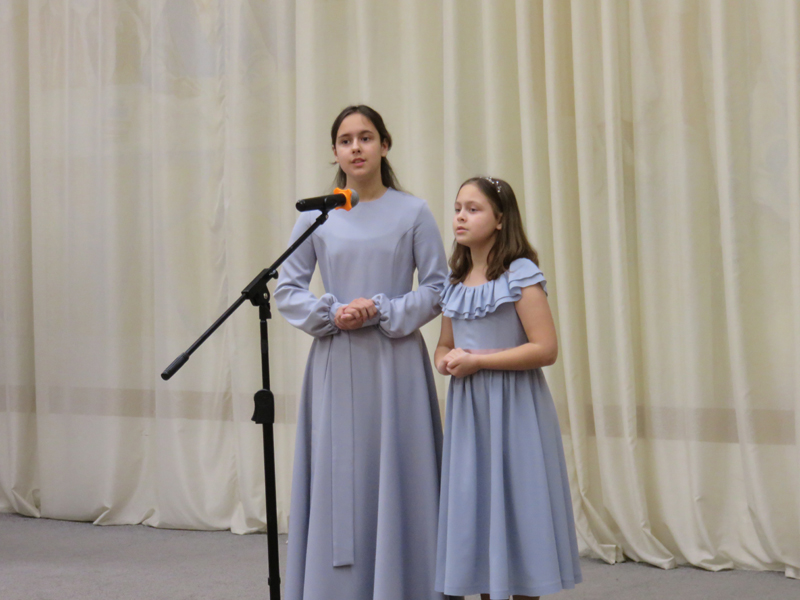 В заключение вечера Екатерина и Анна Пименовы трогательно исполнили песню «Милая моя мама» В. Гаврилина.