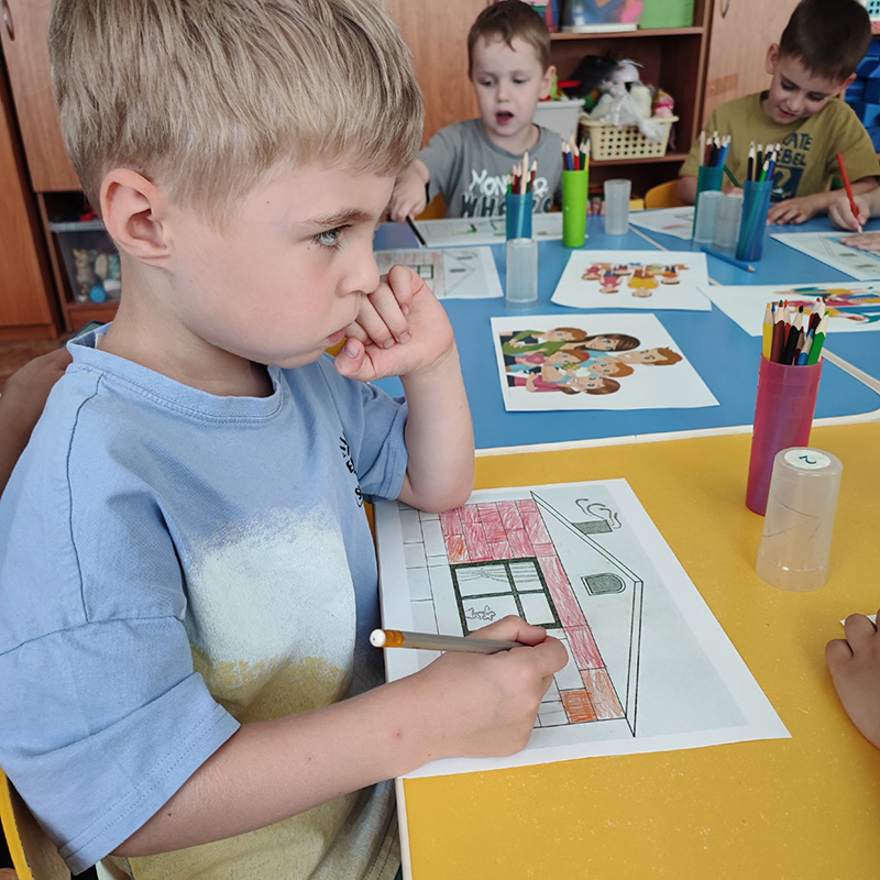 Дети с огромной радостью знакомили друг друга со своими семьями, показывали фотографии своих родных людей, рассказывали о семейных традициях совместного отдыха, приняли участие в игре «Мы вместе». Затем каждый из малышей нарисовал дом своей мечты, написав на его кирпичиках главные слова, из которых состоит семейное счастье.