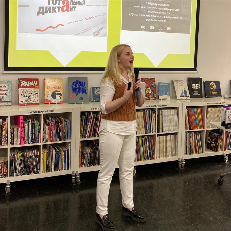 В рамках мероприятия состоялась презентация региональных практик. Наш регион представляла автор этих строк, куратор «Тотального диктанта» в Рязанской области. Я рассказала о методиках, разработанных специально для проекта «Библиотека грамотности».