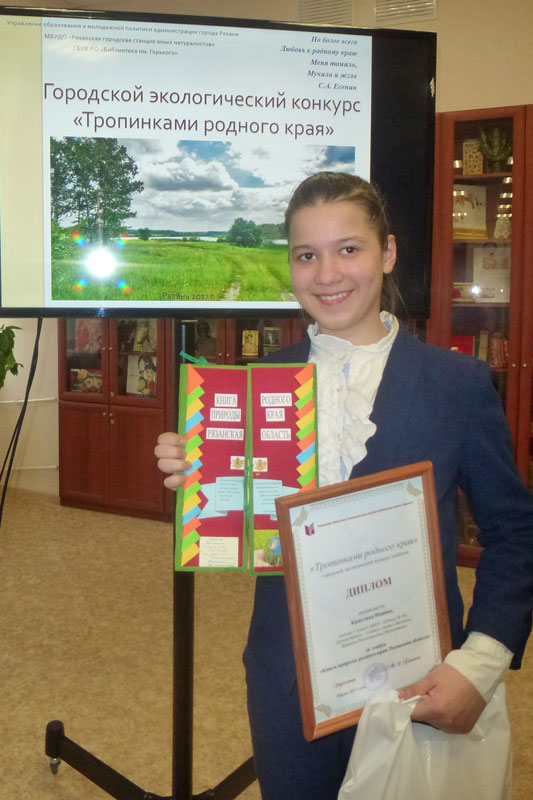 Победители конкурса были объявлены в возрастных категориях «3–4 классы» и «5–7 классы». Специальный диплом, учрежденный Библиотекой им. Горького, и ценный подарок — научно-популярные книги натуралиста-биолога Ивана Павловича Назарова — были вручены ученице 7-го класса школы № 46 Кристине Иваняк за лэпбук «Книга природы родного края. Рязанская область» (руководитель — учитель химии и биологии Наталья Валентиновна Молоствова).