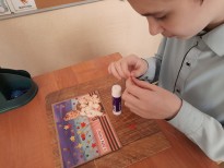 Героями поздравительных открыток ребят стали герои, которых когда-то запечатлели советские художники на своих плакатах. Фон для открыток мальчишки и девчонки делали сами, при помощи цветной гуаши и ватных палочек они нарисовали настоящий фейерверк, который традиционно запускают по всей нашей стране в праздничные майские дни.