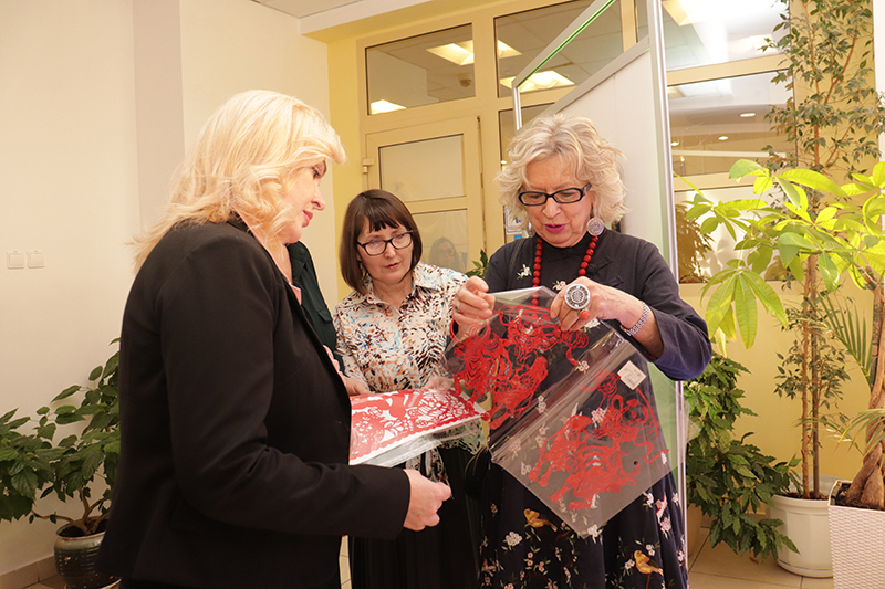 За возможность прикоснуться к аутентичным образцам китайской культуры с многовековой историей автора выставки поблагодарила директор Института Конфуция РГУ имени С.А. Есенина с российской стороны Елена Леонидовна Марьяновская. Ее коллега, директор Института Конфуция с китайской стороны, Ли Гэнвэй произнес слова благодарности автору выставки за глубокий интерес к китайскому народному искусству.