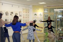 Ученицы 3 класса Елизарьева Полина, Размахнина Полина и Булатникова София вместе с руководителем школы, Ольгой Юрьевной Шульгой, показали начальные этапы обучения классическому танцу, рассказали об истории балета, особенностях танцевальной обуви. Все желающие смогли разучить балетных движений.