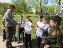 В ходе акции горожанам были розданы подарочные открытки «Я помню! Я горжусь!», значки «С Днем Победы!» и георгиевские ленточки.