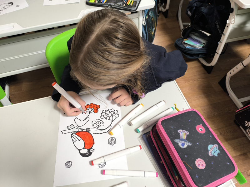 Школьники получили в подарок красочные книжные закладки с полезной информацией о подкормке птиц, раскрасили рисунки и почитали любимые стихотворения про птичек.