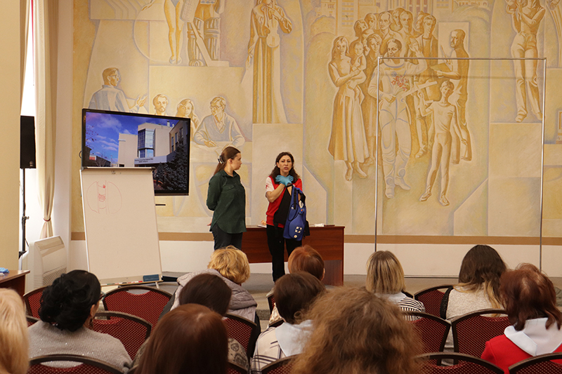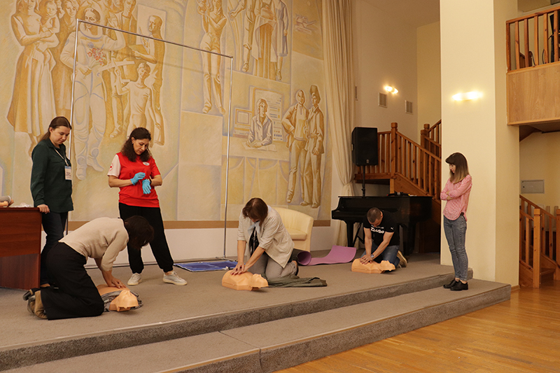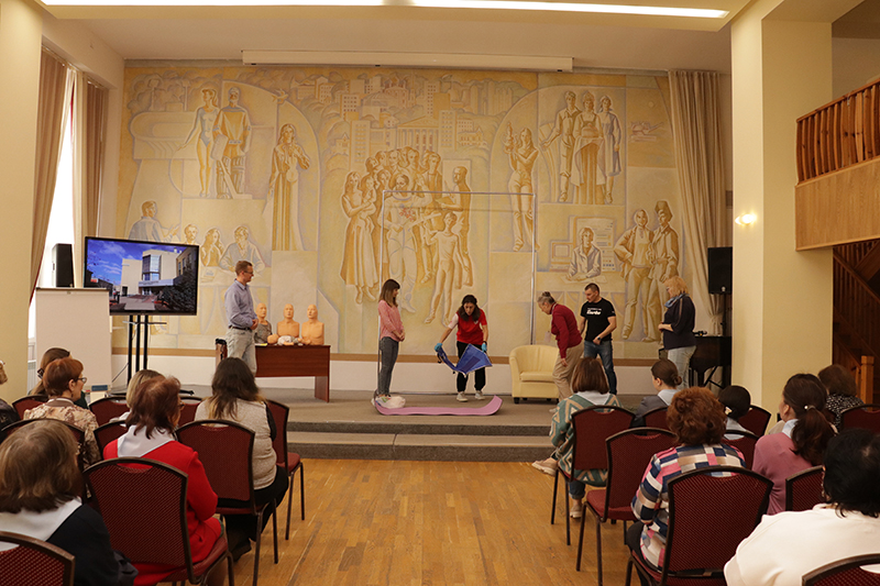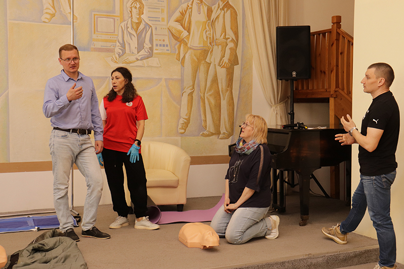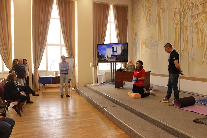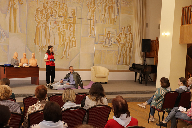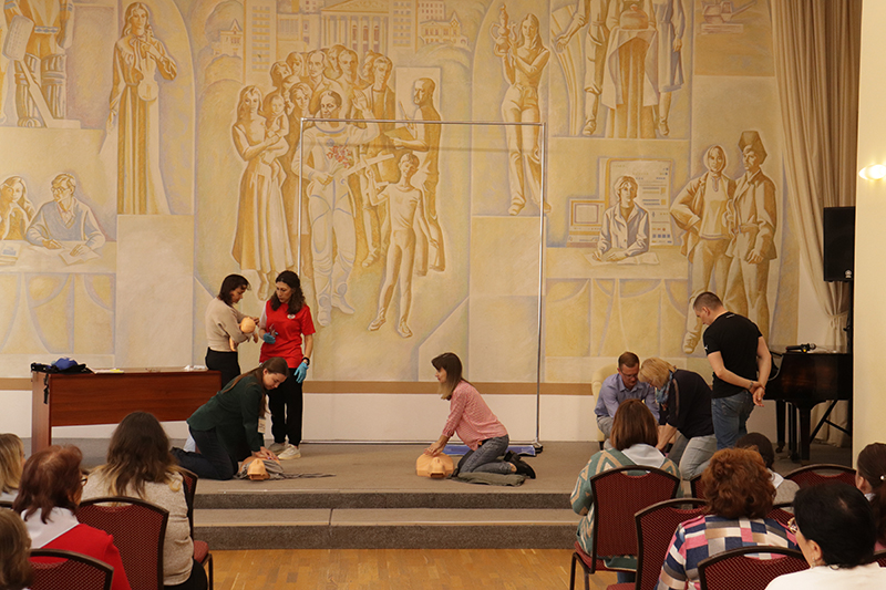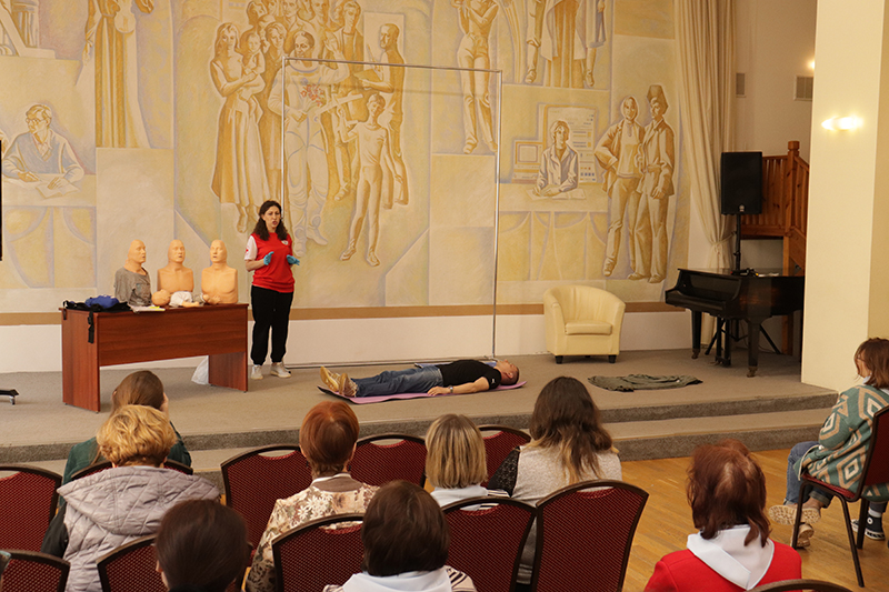 24 апреля в рамках мероприятий, приуроченных ко Дню охраны труда, в библиотеке имени Горького состоялось занятие по оказанию первой помощи пострадавшим. Его провела специалист организации «Красный крест» Елена Владимировна Коновалова. Сотрудники библиотеки отработали с применением специальных тренажеров и манекенов практические навыки по проведению сердечно-легочной реанимации (СЛР) и искусственной вентиляции легких (ИВЛ).