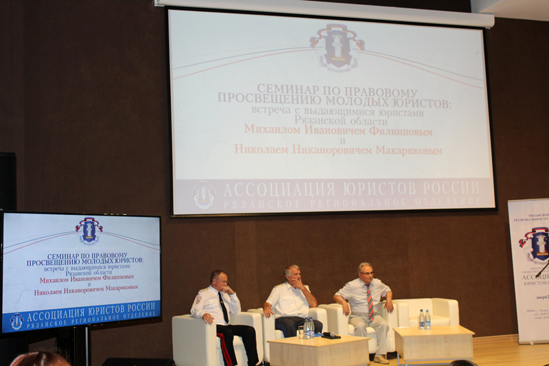 На семинаре присутствовали студенты и курсанты рязанских вузов – Академии ФСИН, РГУ имени С.А. Есенина, РФМУ МВД России им. В.Я. Кикотя, филиала Московского университета имени С.Ю. Витте. Семинар открыл председатель регионального отделения АЮР Анатолий Музюкин, который вручил удостоверения кандидатам в члены Ассоциации. Перед студентами профильных вузов выступили заслуженный юрист Российской Федерации, советник главы города Рязани, генерал-лейтенант юстиции Михаил Филиппов и советник главы администрации Рыбновского района по безопасности, генерал-майор полиции Николай Макариков. Каждый из спикеров поделился со студентами своим уникальным опытом работы в органах юстиции и правоохранительных органах.
