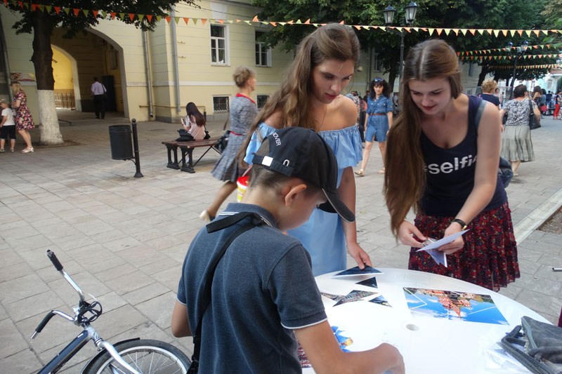 Дети и взрослые охотно отвечали на вопросы о сказках, знаменитых рязанцах и достопримечательностях областного центра, собирали изображения исторических мест России из пазлов.