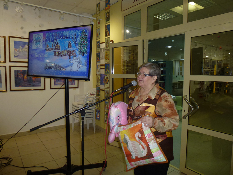 В заключение мероприятия председатель клуба «Волшебный лоскуток» Любовь Викторовна Дроздова поздравила ребят с наступающим Новым годом и подарила им сказочные подушки-зверюшки, сшитые из разноцветных лоскутков.