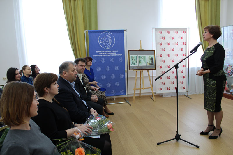 Выставку открыла Наталья Николаевна Гришина, директор библиотеки, председатель Общественной палаты Рязанской области, председатель областного Совета женщин. Она отметила, что выставка является подарком женщинам региона к 8 марта.