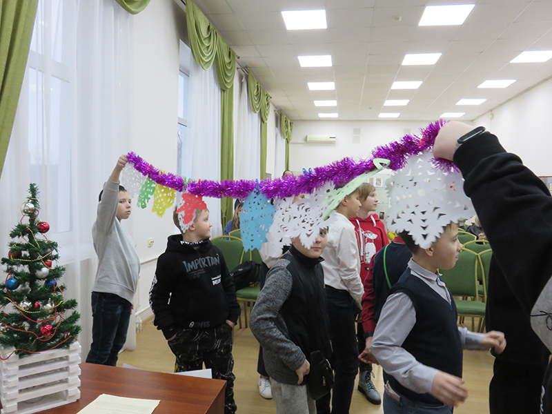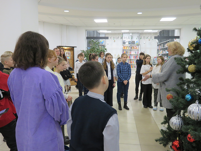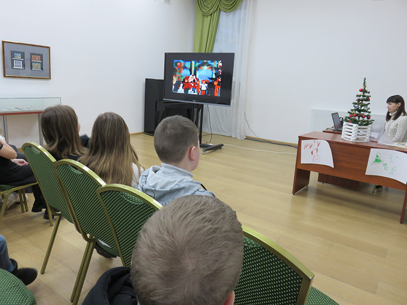 В начале встречи для юных гостей была проведена обзорная экскурсия по библиотеке, а затем ребята стали участниками необычного путешествия. Интерактивная программа «Новый год шагает по планете» рассказала о традициях празднования Нового года и Рождества в разных странах, мальчишки и девчонки узнали много нового и интересного. Они сравнили, какие традиции распространились по всему миру, а какие остались характерными только для определенной страны. И не просто сравнили, а попробовали сами считать виноградины по-бразильски, украшать дом по-немецки, рисовать новогодние желания по-японски, читать предсказания по-китайски, разгадывать новогодние загадки по-русски.