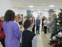 Ребята пришли на встречу с прекрасным вместе со своими родителями и преподавателем по классу теории музыки Беляковой Галиной Михайловной.
