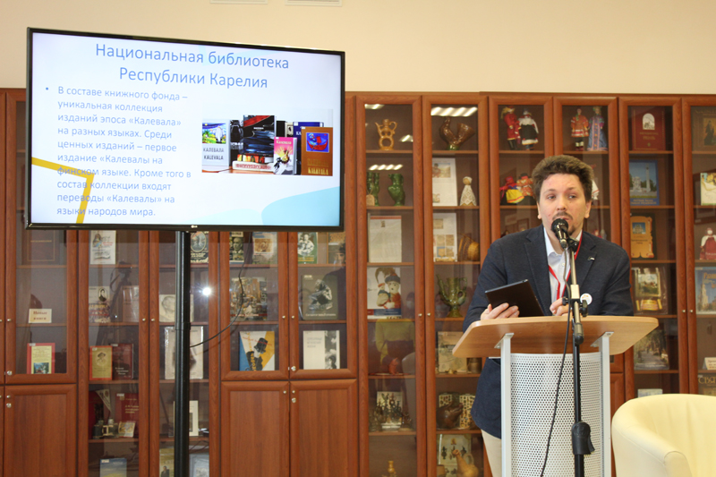 А. Ларионов представил новинки карельской литературы, познакомил с национальными книгами Карелии, рассказал о карело-финском эпосе «Калевала», о работе Национальной библиотеки Республики Карелия в области поддержки и продвижения национальной литературы и издательств Карелии, ответил на многочисленные вопросы участников мероприятия.