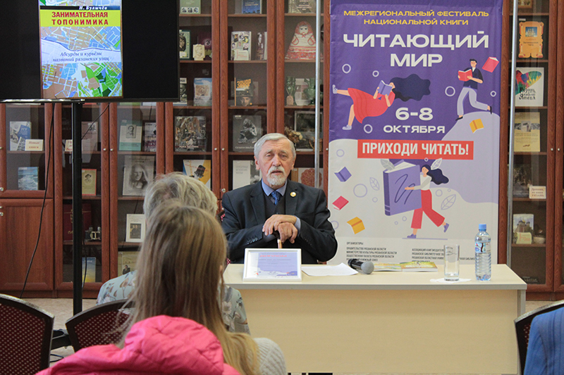 В рамках Международного фестиваля «Читающий мир» - 2022 в Центре краеведения Рязанской областной универсальной научной библиотеке имени Горького 7 октября 2022 года состоялась встреча с председателем Топонимический комиссии г. Рязани, краеведом Николаем Александровичем Булычевым, который представил участникам встречи книги: «Занимательная топонимика. Абсурды и курьезы названий рязанских улиц» и «Рязань в названиях от «А» до «Я».