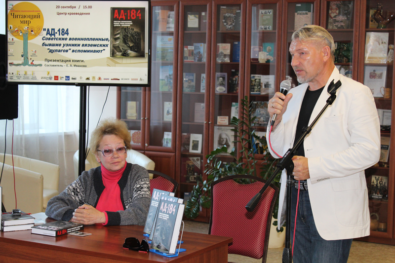 В рамках фестиваля «Читающий мир» состоялась презентация книги «АД-184. Советские военнопленные, бывшие узники вяземских «дулагов», вспоминают». О ней рассказали авторы-составители издания: президент Международной Ассоциации общественных поисковых объединений «Народная память о защитниках Отечества», член комиссии по увековечиванию памяти погибших при защите Отечества Международного Союза ветеранов и Международного комитета ветеранов войны Евгения Андреевна Иванова, а также военный поисковик, исследователь Алексей Николаевич Башков.