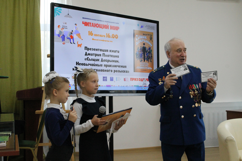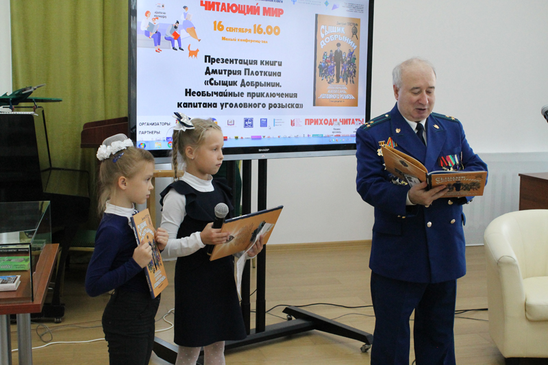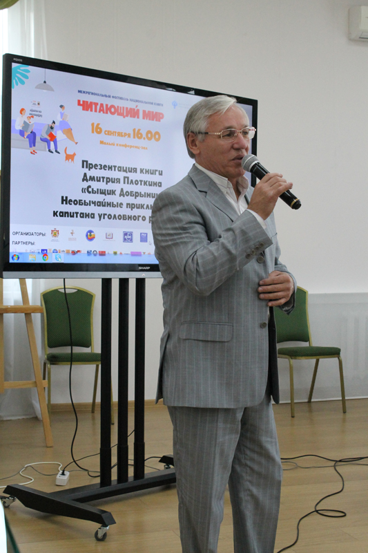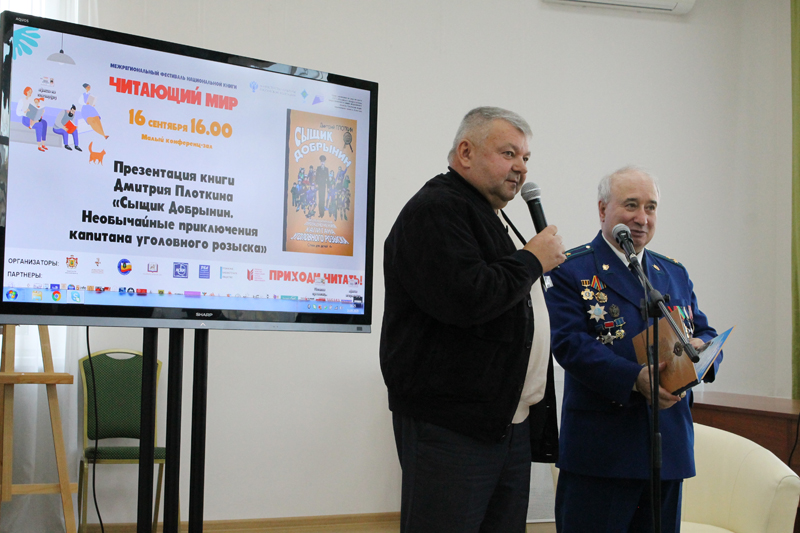 Сегодня в рамках Фестиваля национальной книги «Читающий мир» при содействии Рязанского библиотечного общества в библиотеке имени Горького прошла презентация книги Дмитрия Плоткина «Сыщик Добрынин». Автор – член Союза писателей России, кандидат юридических наук, старший советник юстиции, почетный работник прокуратуры РФ.