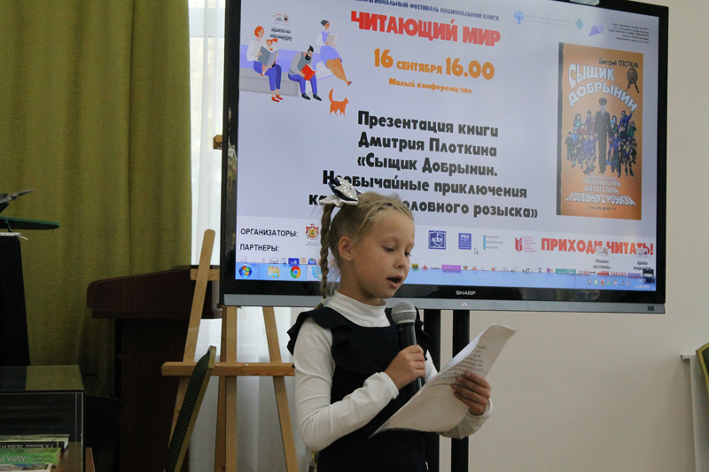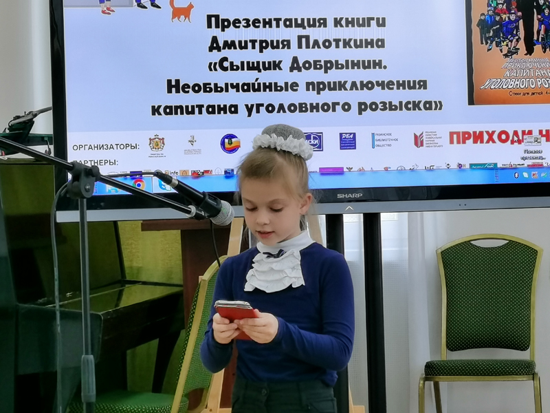 Встречу украсили стихотворные номера Яны Аксентьевой и Маши Бодровой, внучки известного рязанского писателя Валентина Сафонова. Дмитрий Плоткин подарил девочкам книги «Сыщик Добрынин» со своим автографом и вручил удостоверения «Юного сыщика». Приятным сюрпризом для поклонников творчества писателя стала его автограф-сессия.