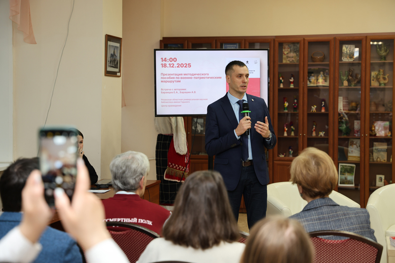 В рамках презентации 18 декабря 2025 года в Рязанской областной научной библиотеке имени Горького прошла встреча с авторами маршрутов Евгением Александровичем Баранцевым, ответственным секретарем редакционной коллегии по изданию многотомной книги «Солдаты Победы. 1941-1945» и Александром Владимировичем Барашиным, членом рабочей группы редакционной коллегии по подготовке материалов книги «Солдаты Победы», а также с представителями Комитета инвестиций и туризма Рязанской области, автономной некоммерческой организации «Агенство развития туризма Рязанской области», Регионального отделения Общероссийского общественного гражданско-патриотического движения «Бессмертный полк России» в Рязанской области и Регионального отделения Общероссийского общественного движения по увековечению памяти погибших при защите Отечества «Поисковое движение России» в Рязанской области.