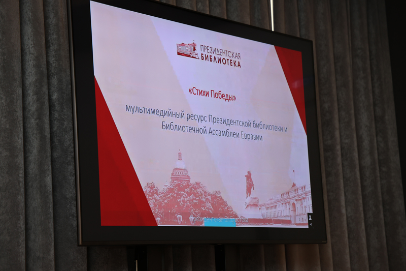В рамках дискуссии директор департамента по библиотечному взаимодействию Президентской библиотеки Юлия Селиванова рассказала о совместном с Библиотечной Ассамблеей Евразии проекте – создании мультимедийного ресурса «Стихи Победы».