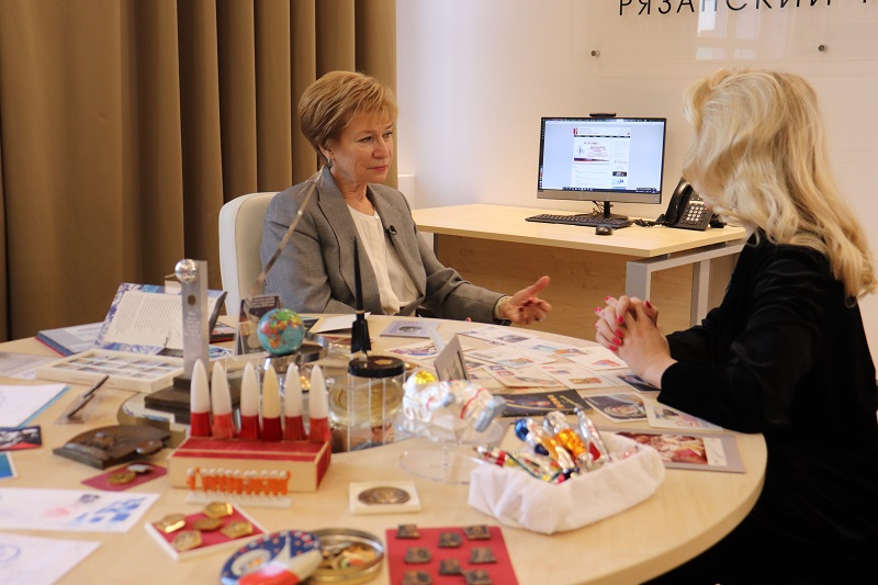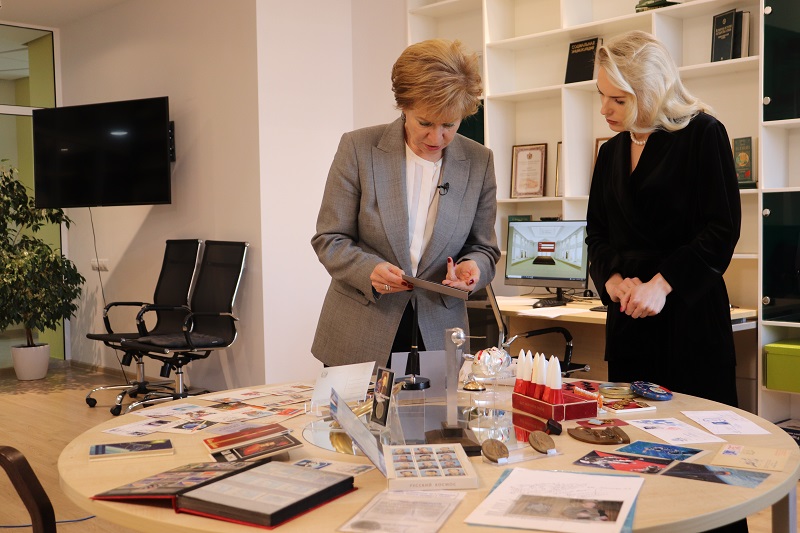 Телеведущая «Роскосмос ТВ» Юлия Дерябина взяла интервью у директора библиотеки Натальи Гришиной, которая рассказала об экспозиции и ответила на ряд интересующих гостей вопросов.