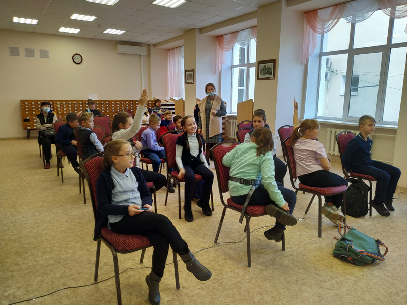 Юные читатели с удовольствием отвечали на задаваемые вопросы о современных приметах времени, героях и ситуациях, которые им интересны.