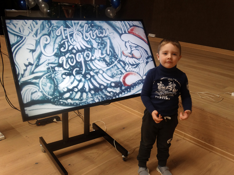 Наши гости увидели сказочную историю о доброте и дружбе. Художник Марина Бритова заставила всех присутствующих поверить в чудеса. Обычным песком она «рисовала» волшебные сюжеты, оживающие на глазах зрителей. Полностью погрузиться в атмосферу сказки помогал текст, зачитанный Леонидом Семеновичем Резниковым.