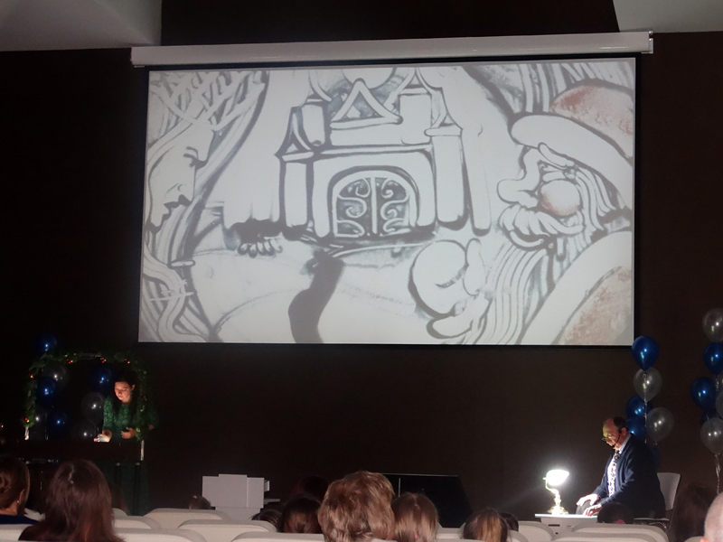 В преддверии Нового года в Горьковском зале библиотеки дети и взрослые посмотрели песочный спектакль «Новогодняя сказка» театра песка «Брим».