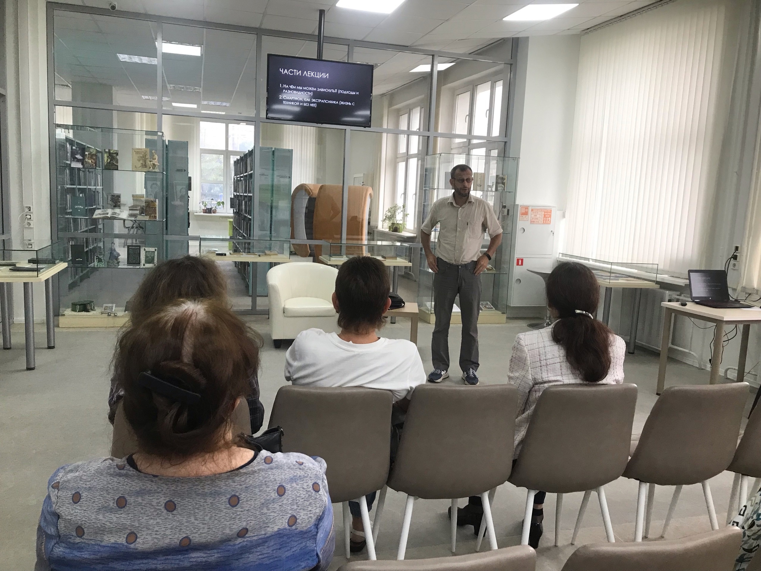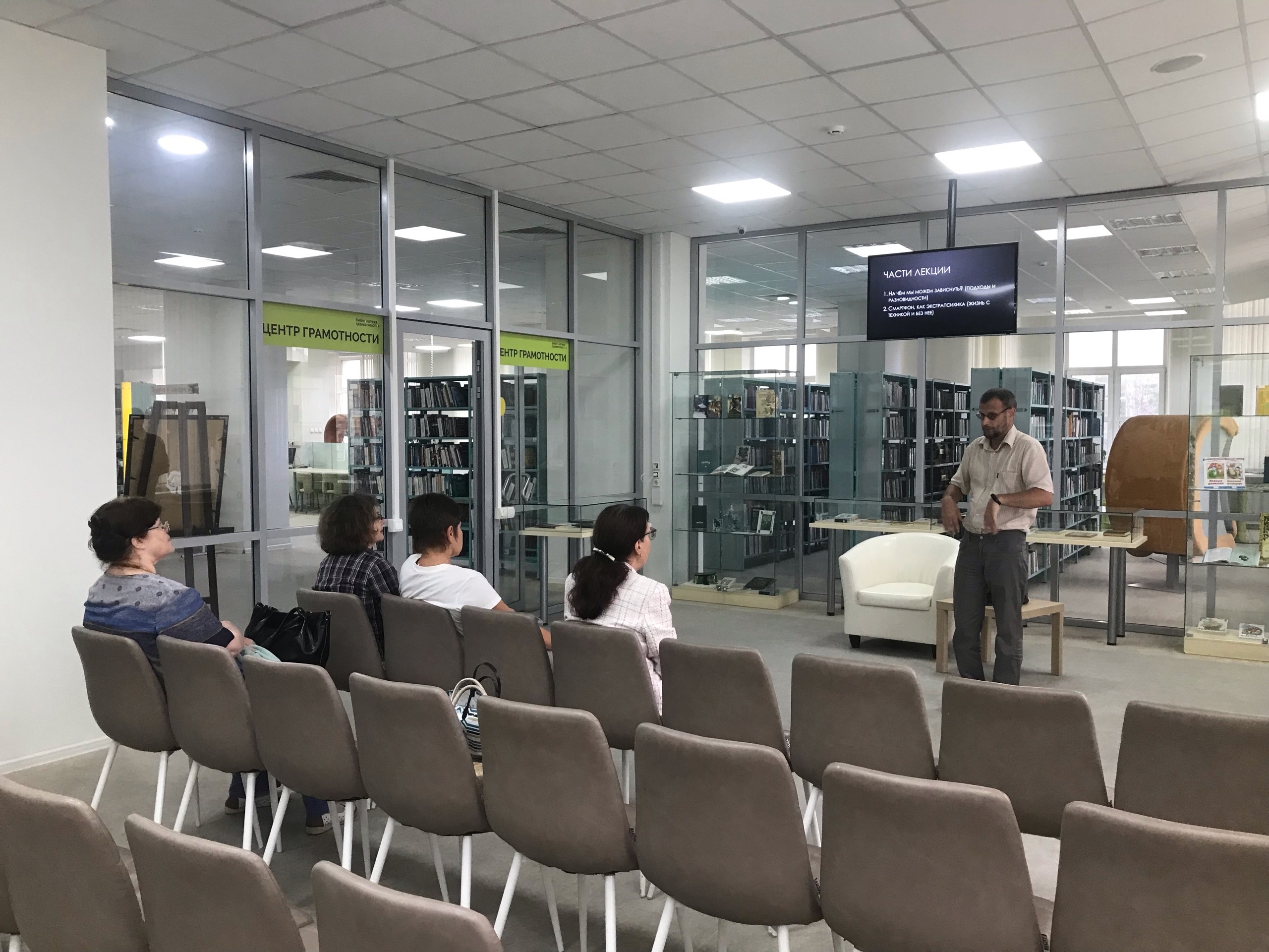 В библиотеке имени Горького 8 августа прошла очередная встреча в рамках социального проекта – цикла интерактивных лекций «Психологическая поддержка семьи в условиях повышенной напряженности, мировой нестабильности и перемен». Вторую часть лекции «Зависимость от гаджетов: смартфон как экстрапсихика (про жизнь с техникой и без нее)» прочитал кандидат философских наук, доцент, психолог, психодраматист Роман Шутов.