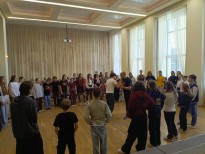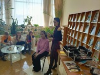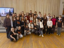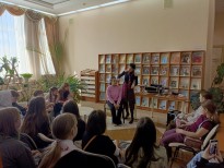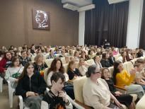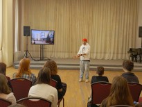 О тонкостях и секретах профессии гримера узнали будущие актеры от Марии Левицкой, визажиста, специалиста по прическам, победителя международных чемпионатов, выпускницы школы Останкино. Она продемонстрировала на участнике встречи процесс нанесения грима.