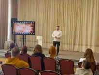 Президент федерации педагогов кино и театра РФ, режиссер, оператор Олег Бурдиков обсудил с участниками фестиваля основные профессиональные задачи кинооператора, поделился, как избежать ошибок при работе на съемках сюжетов.