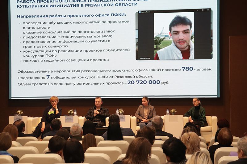 Украшением заседания Общественного совета стало приветствие с Всемирного фестиваля молодежи, проходящего в г. Сочи на площадке образовательного центра «Сириус». В формате прямого включения заведующий центром креативных индустрий Никита Николаевич Попов рассказал о работе проектного офиса Президентского фонда культурных инициатив в Рязанской области и реализации федерального проекта «Гений места». Заведующая отделом молодежных проектов и волонтерской деятельности Дарья Юрьевна Фролова провела для коллег живой репортаж об участии в фестивале молодежи сотрудников библиотеки имени Горького, находящихся в составе рязанской делегации.