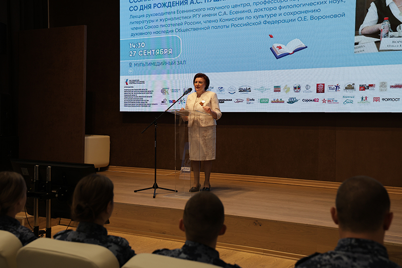 Лекцию прочитала Ольга Ефимовна Воронова, руководитель Есенинского научного центра, профессор кафедры литературы и журналистики Рязанского государственного университета имени С.А. Есенина, доктор филологических наук, главный редактор журнала «Современное есениноведение», член Союза писателей России, член Комиссии по культуре и сохранению духовного наследия Общественной палаты Российской Федерации.